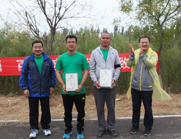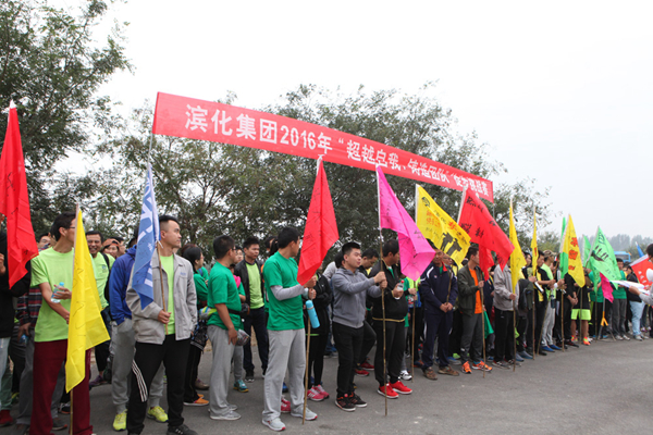 为庆祝厂庆46周年,10月15日上午,集团公司2016年度“超越自我,铸造团队”徒步挑战赛在滨州黄河大坝成功举行,比赛全程25公里,共50支队伍300余人参加了此次比赛。集团公司副总经理、党委副书记李晓光,工会主席、监事会主席金建全参加了比赛并为获奖队伍颁奖,历时5个小时的比赛,最终,集团公司消防勇士队、安通青年突击队、化工化验队以优异的成绩喜获三甲。
