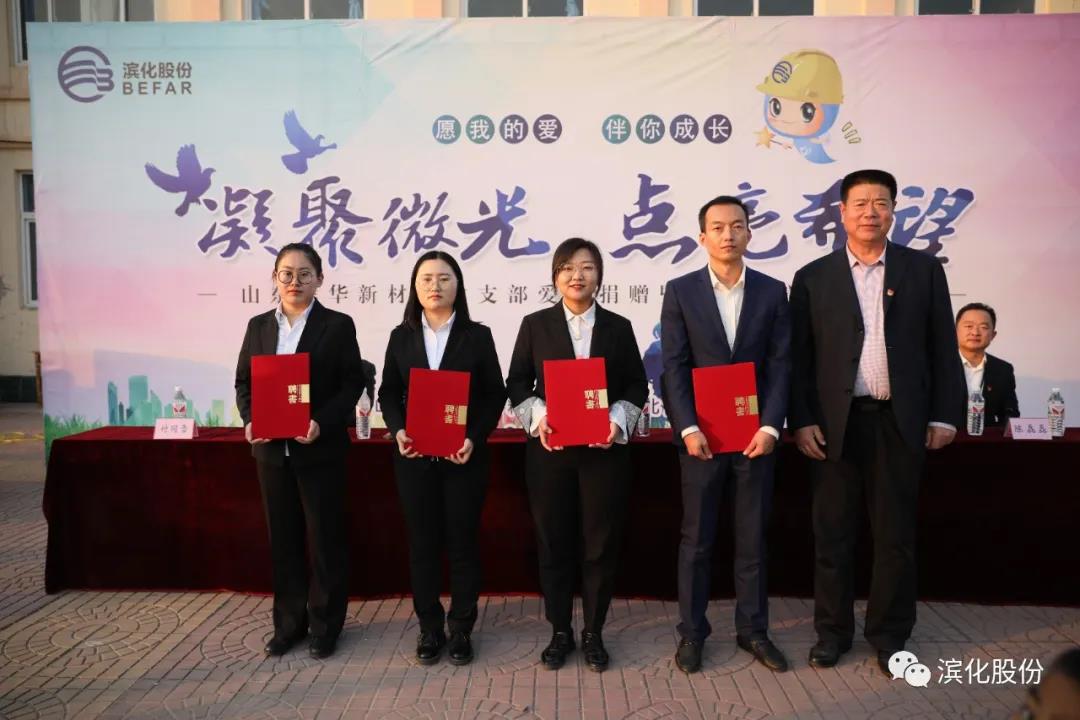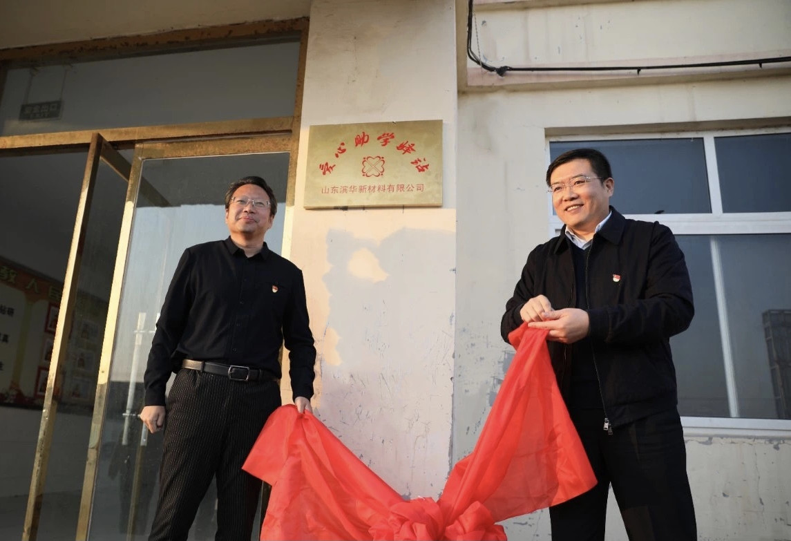 北海经济开发区党工委书记、管委会主任马军权,EBET易博集团副董事长、滨华新材料公司董事长于江共同为“爱心助学驿站”揭牌