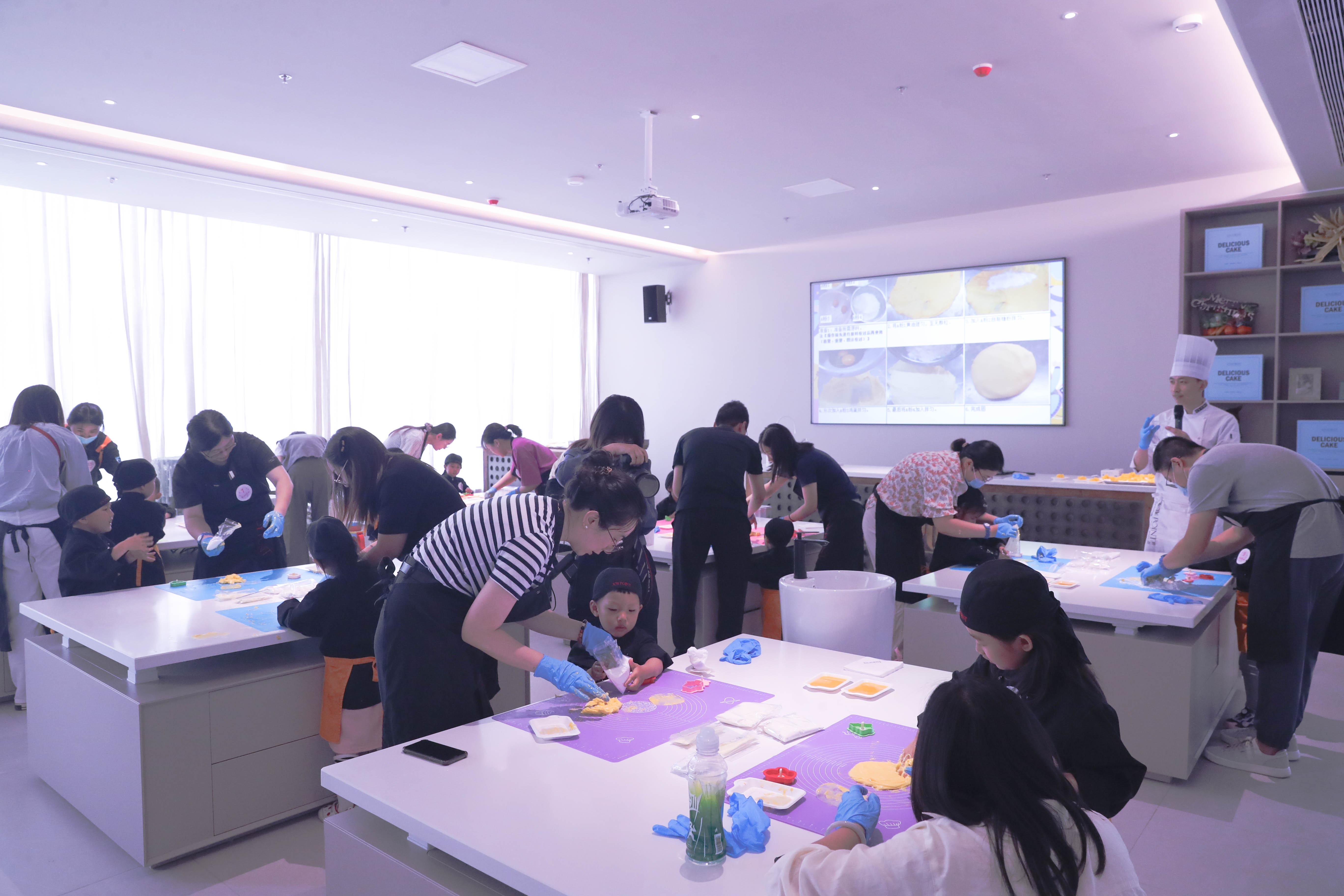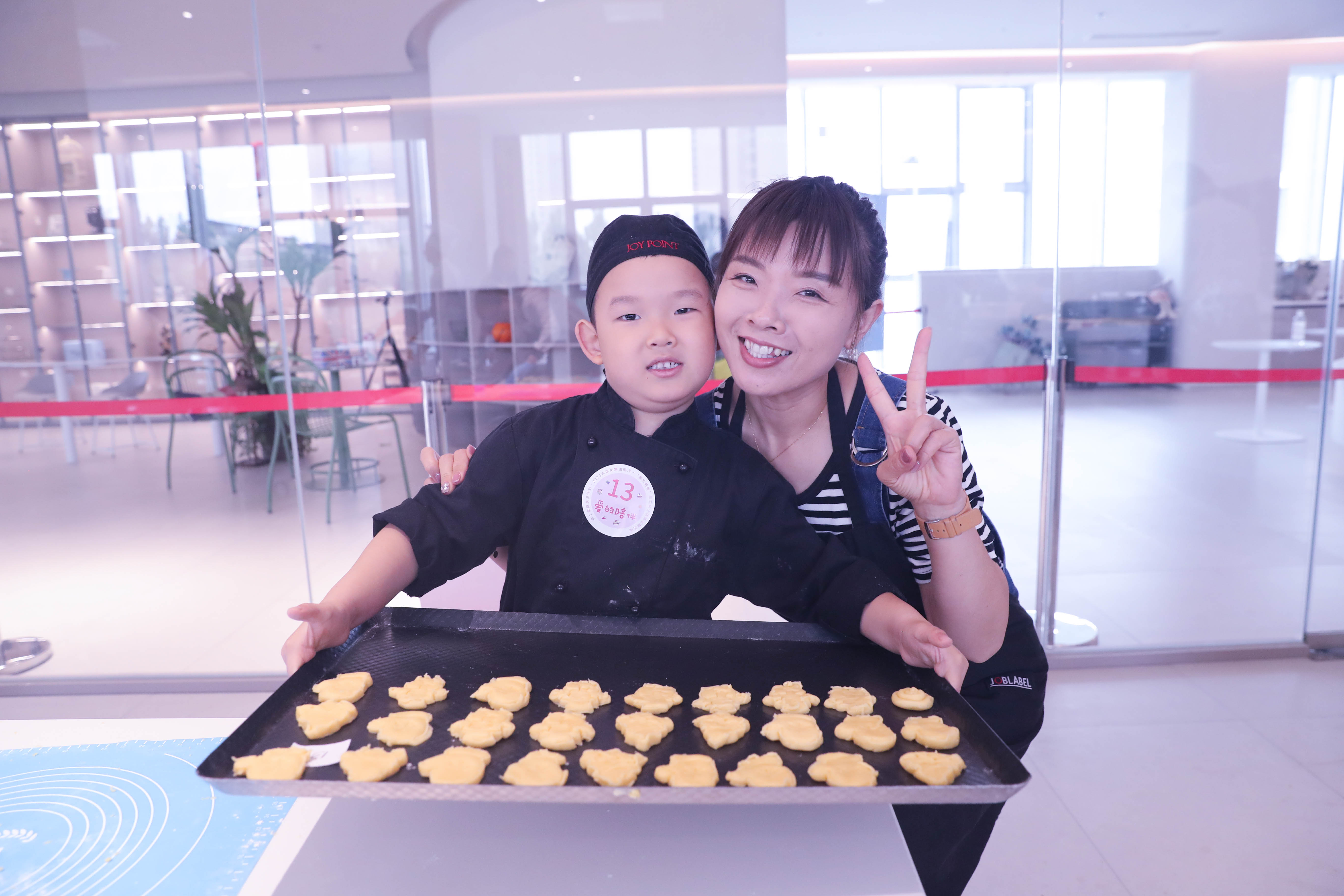 大小“盆友”携手揉面团、做造型,感受着食材的温度,享受着烘焙带来的乐趣,画面和谐而温馨。
