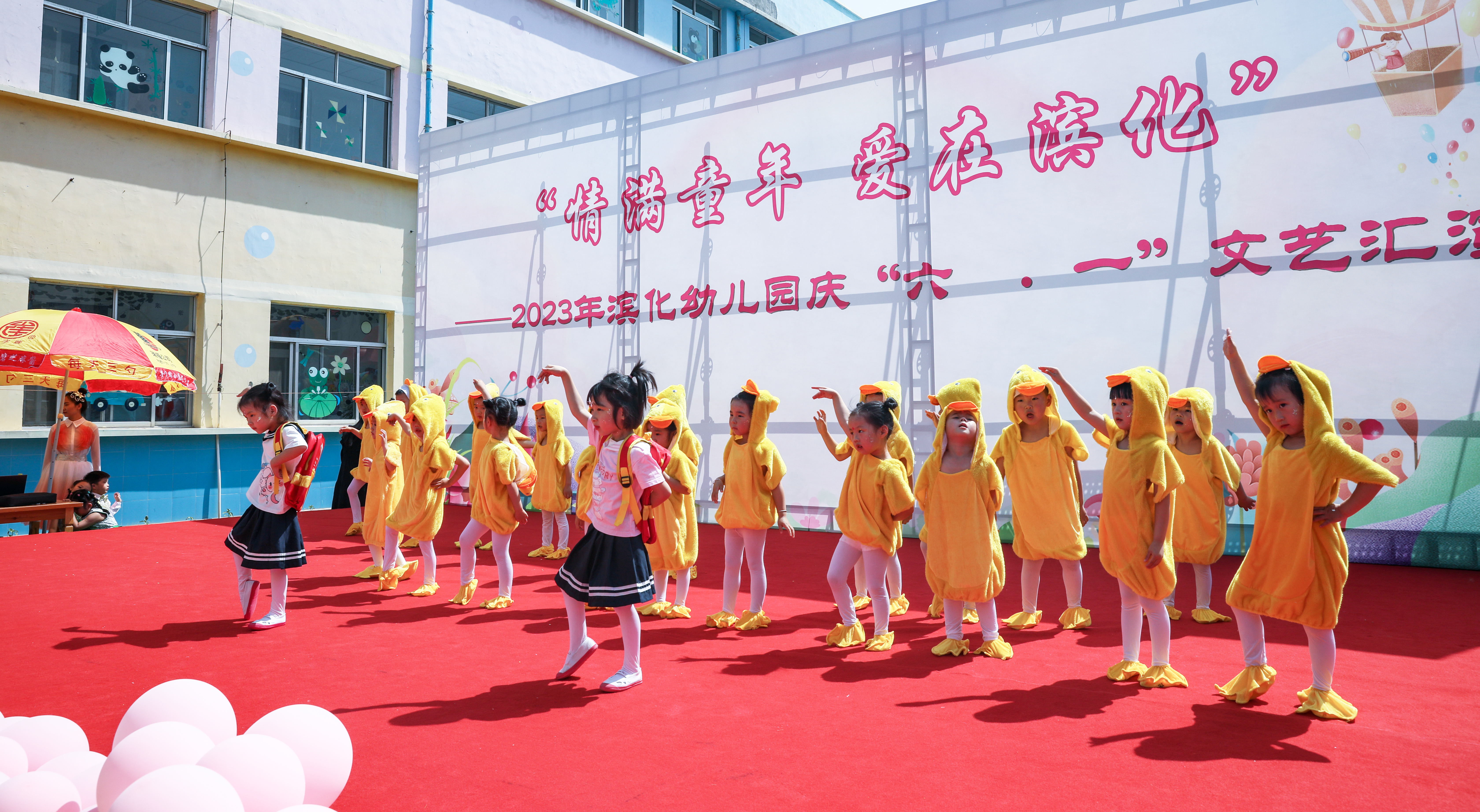 6月1日上午,EBET易博幼儿园。EBET易博萌娃们身着色彩明艳的演出服正在台上欢快地进行着表演。