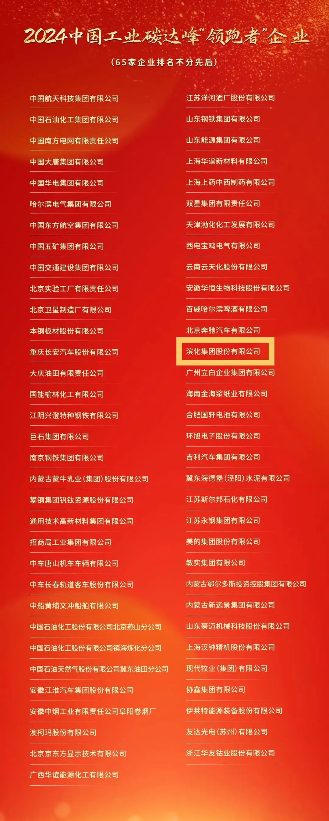 12.01/ 2024滨州网:EBET易博集团上榜2024中国工业碳达峰 “领跑者”企业名单